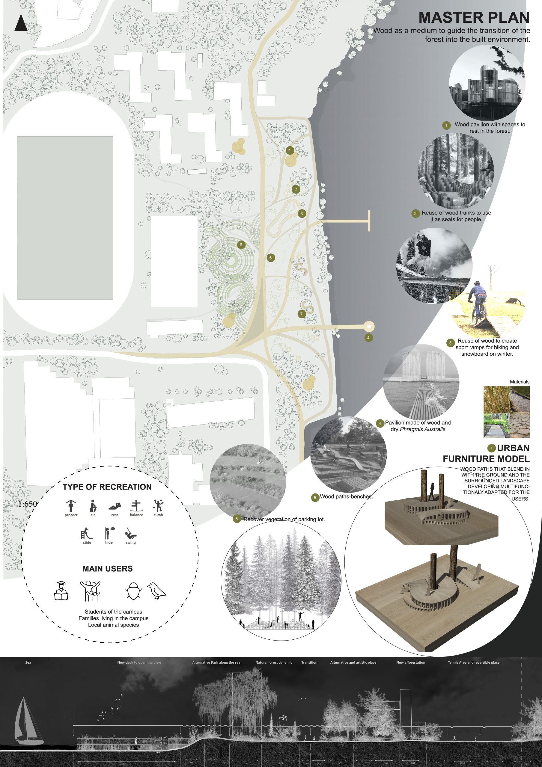 The design interventions can range from areal plans to landscape design, buildings to urban interventions or human scale spatial interventions to products. Even if the students are designing products or furniture, these should be presented in the context of the campus on a site or sites of the students’ choosing. The sites can be located on empty lots, attached to existing buildings or in recreational areas. The students should study the site and by conducting a SWOT analysis and reflect on the impact of their design on the site and its immediate surroundings.